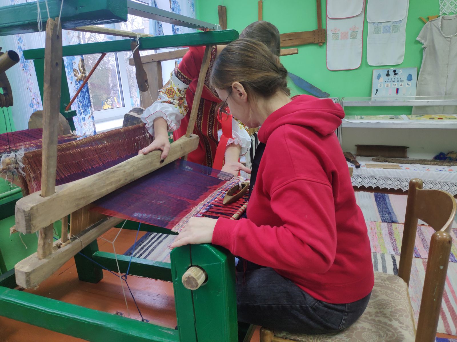 Старинные ткацкие станы 1856 года – действующие. Они появились в сельском клубе задолго до открытия музея. Культработникам их передали жители окрестных деревень. Ольга Силантьева вела кружок ткачества, который продолжил свое существование уже в новом помещении. Каждый желающий может поучаствовать в процессе обработки льна вручную, как это делали наши предки. На базе музея можно пройти мастер-классы по ткачеству на стане, по плетению поясов.