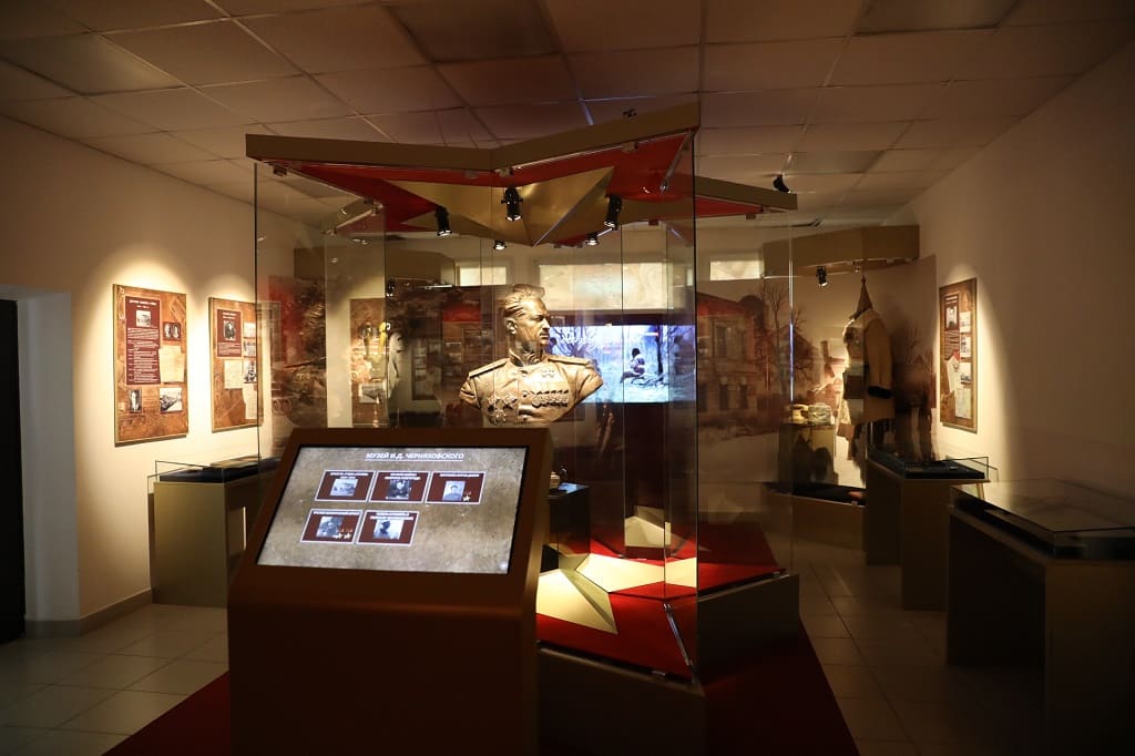 В музее, созданном Российским военно-историческим обществом, представлены материалы о жизни и боевом пути Ивана Черняховского: исторические документы, все награды генерала – точные копии, сделанные на Монетном дворе РФ в Москве. В небольшом камерном помещении представлены также образцы обмундирования времен Великой Отечественной войны, и необычные экспонаты – к примеру, офицерский пистолет «Маузер», аккордеон «Weltmeister», немецкий полевой телефонный аппарат и американский телефон из тех, что были поставлены СССР по ленд-лизу.