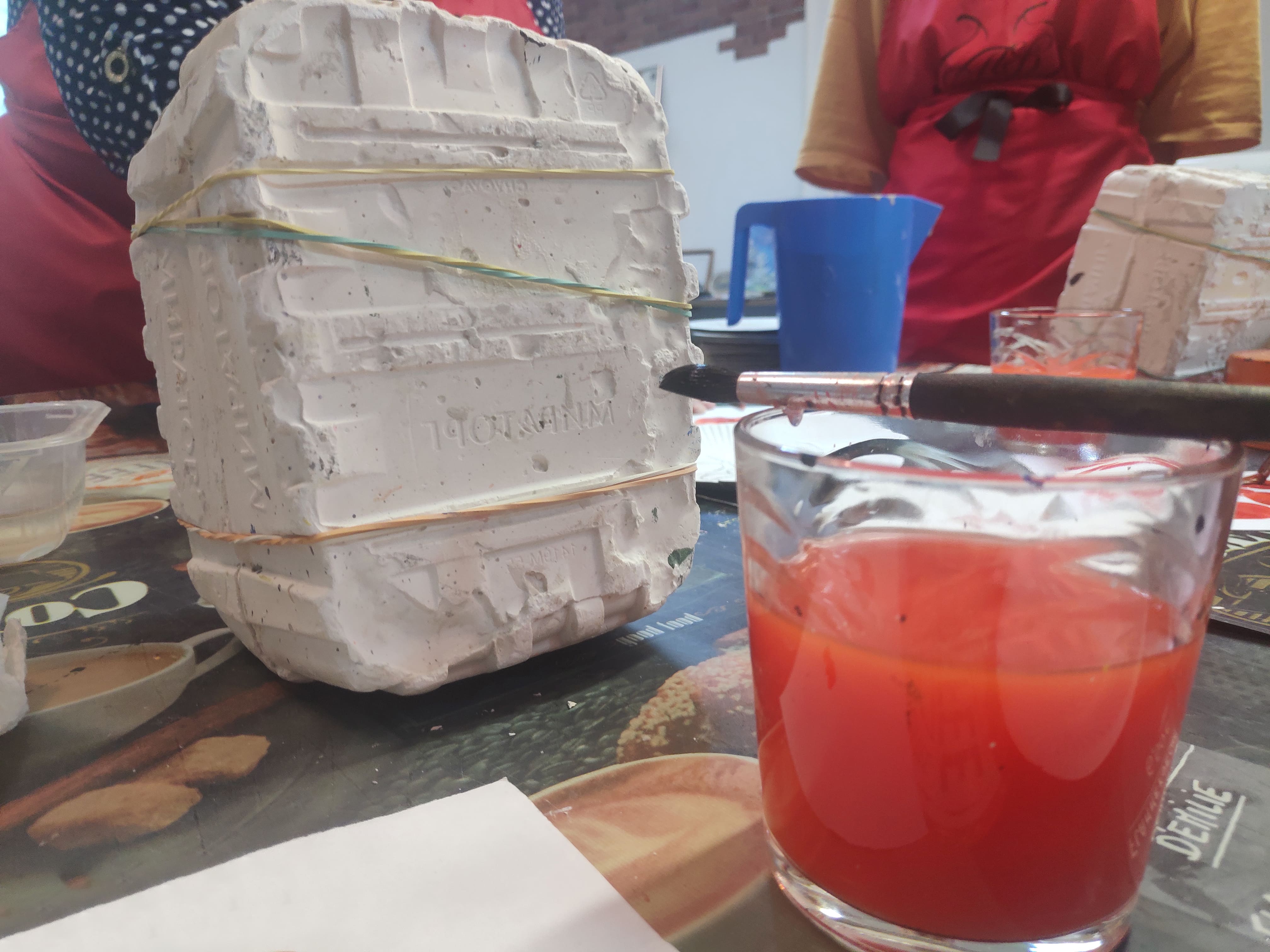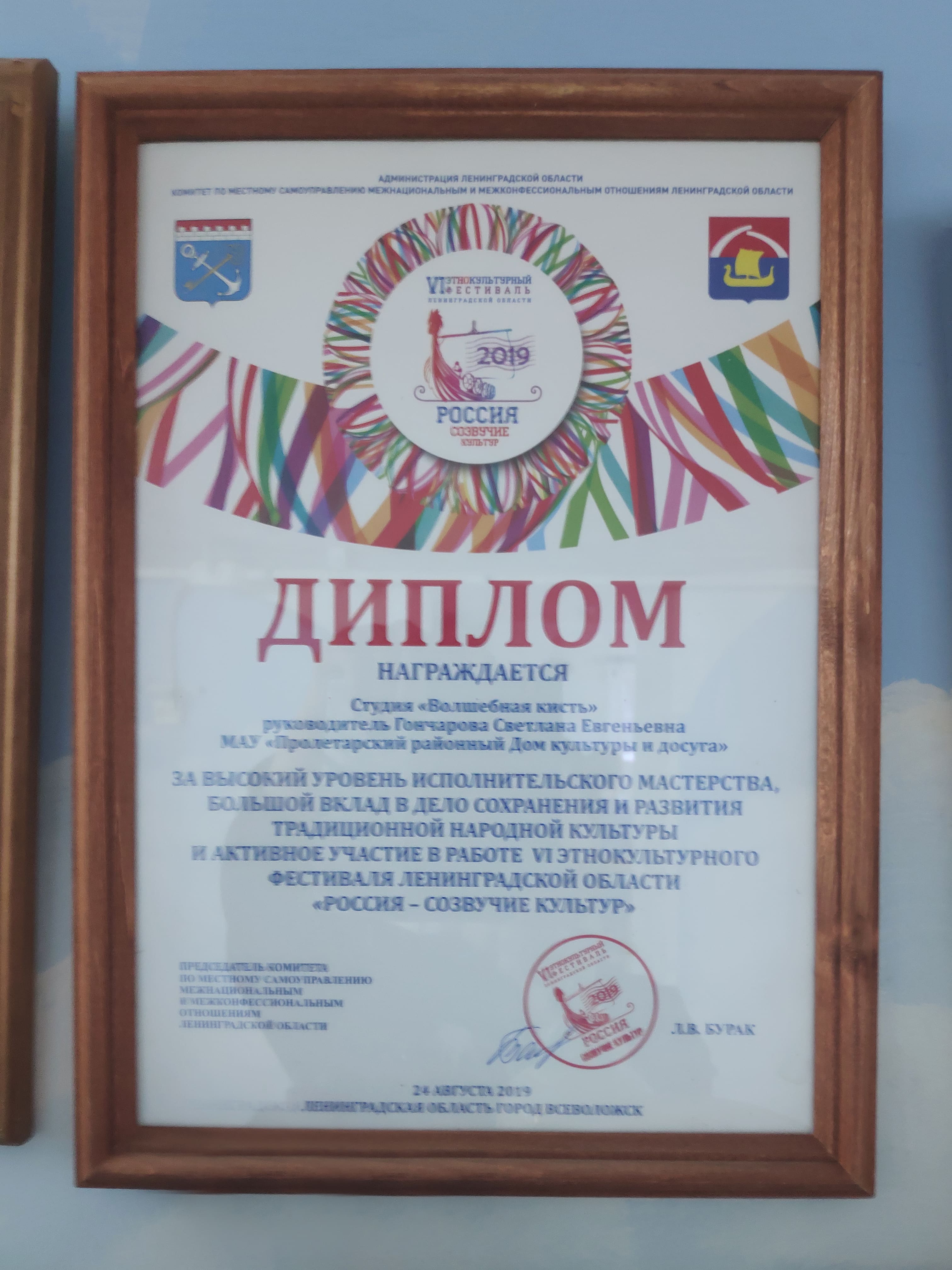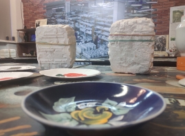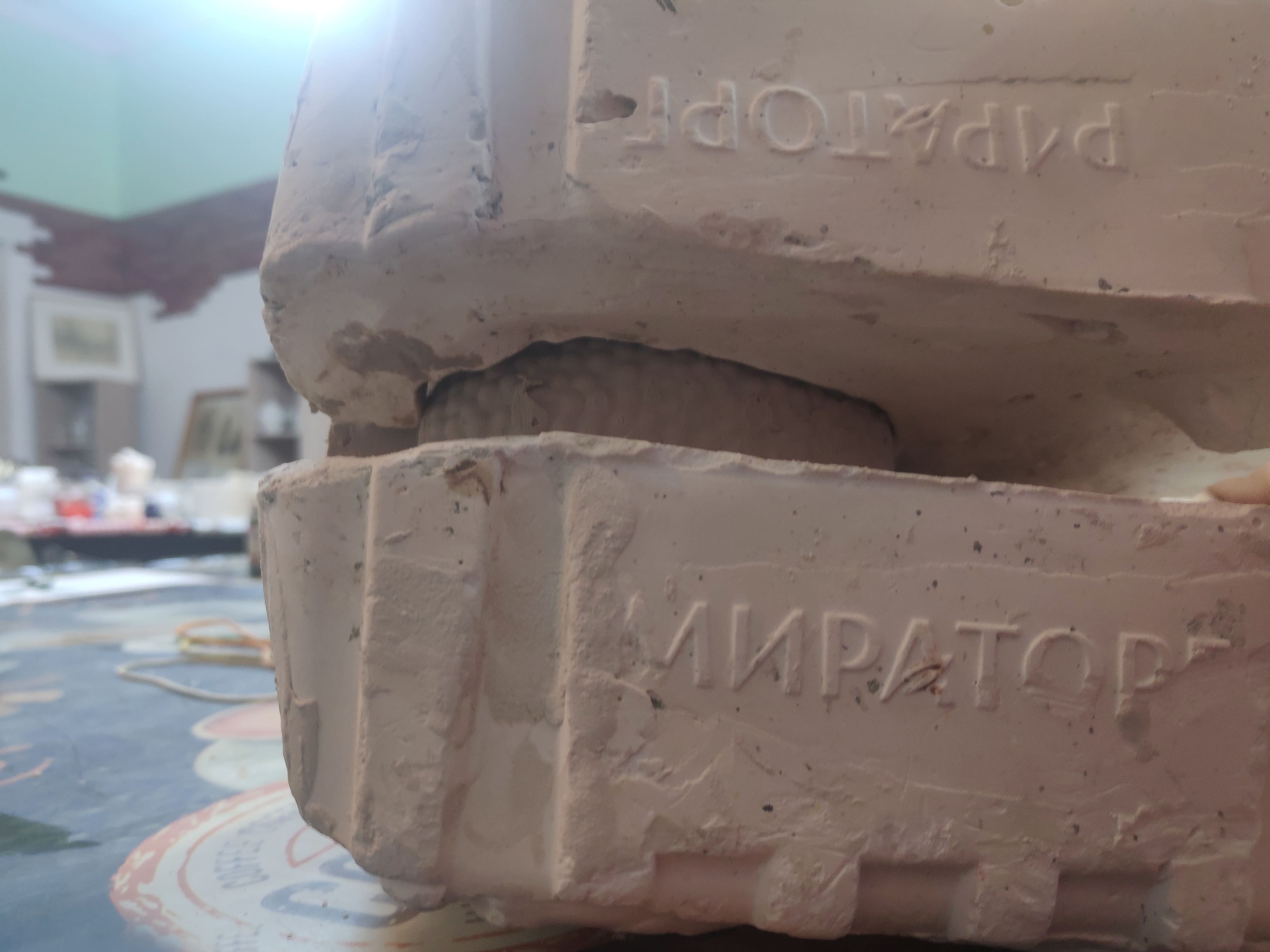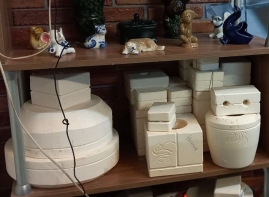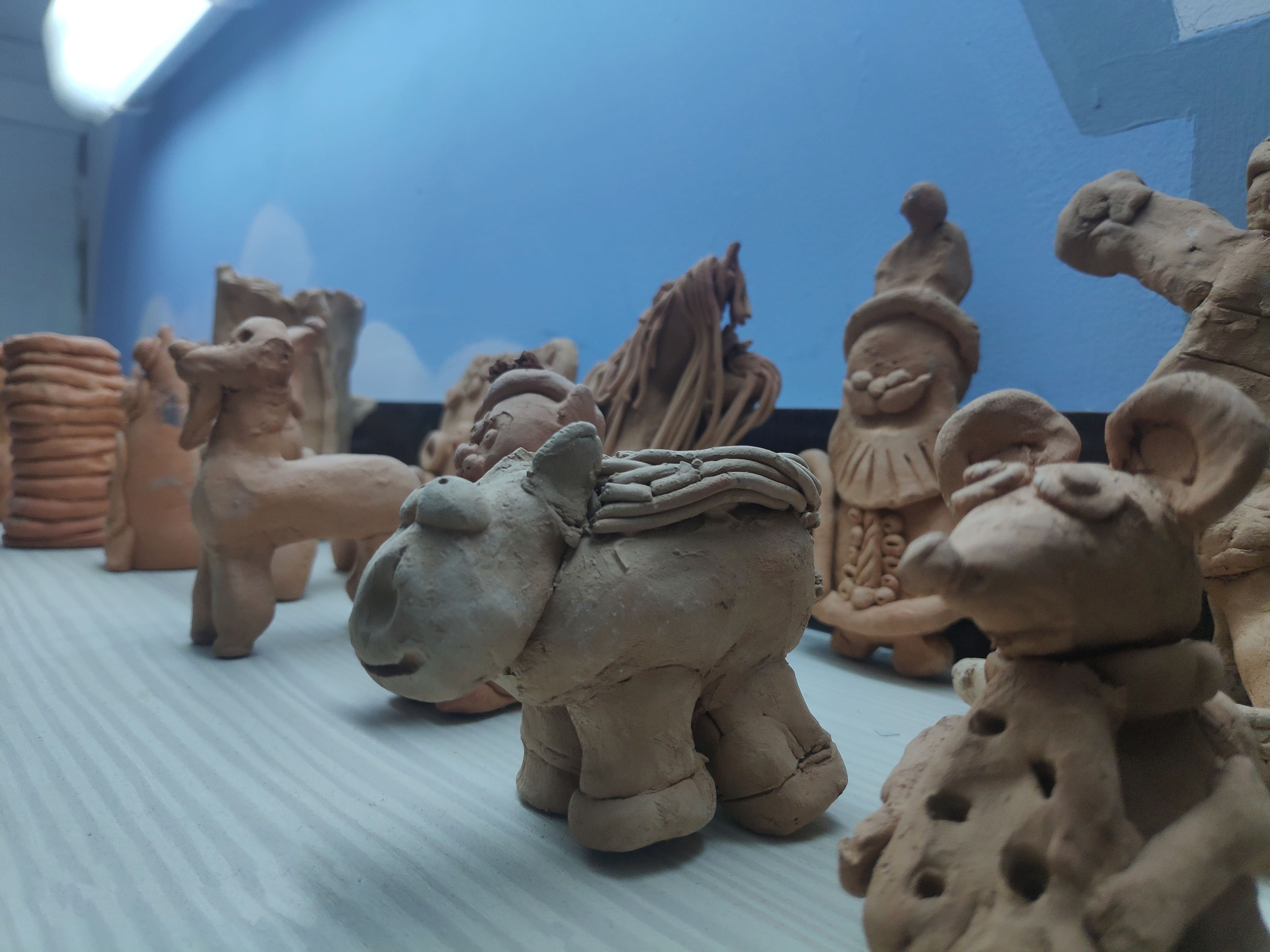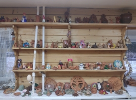 Пролетарский районный Дом культуры, на базе которого создан музей: живописный холл, детские мастерские, формы для обжига, готовые изделия и сувенирная продукция. Дата съемки: осень 2022 года.