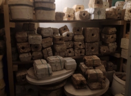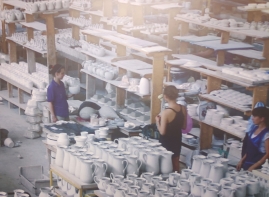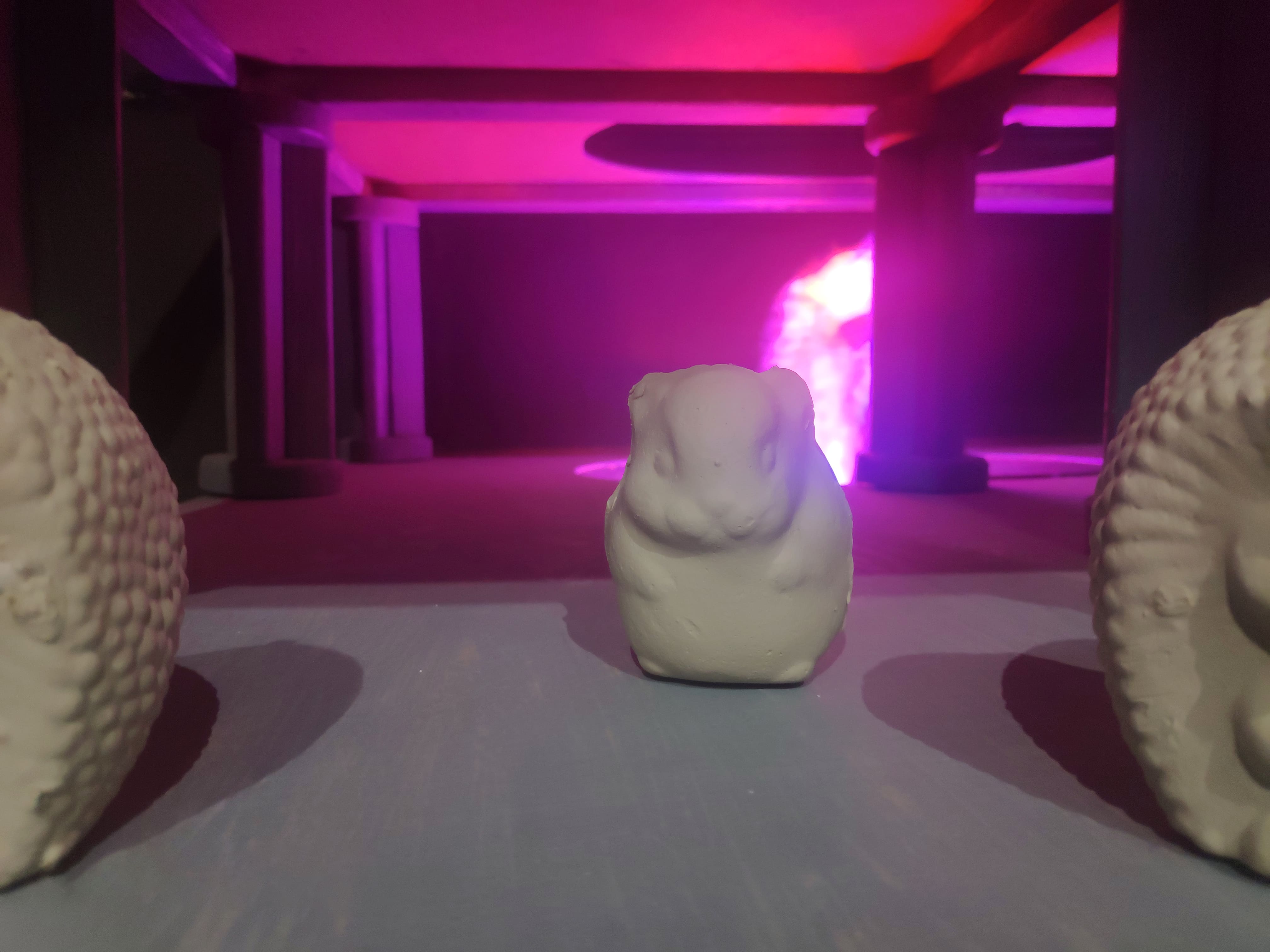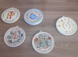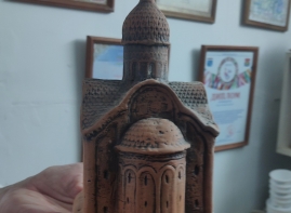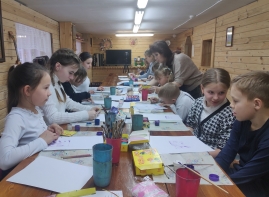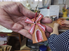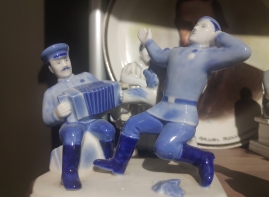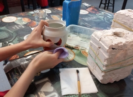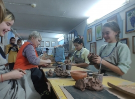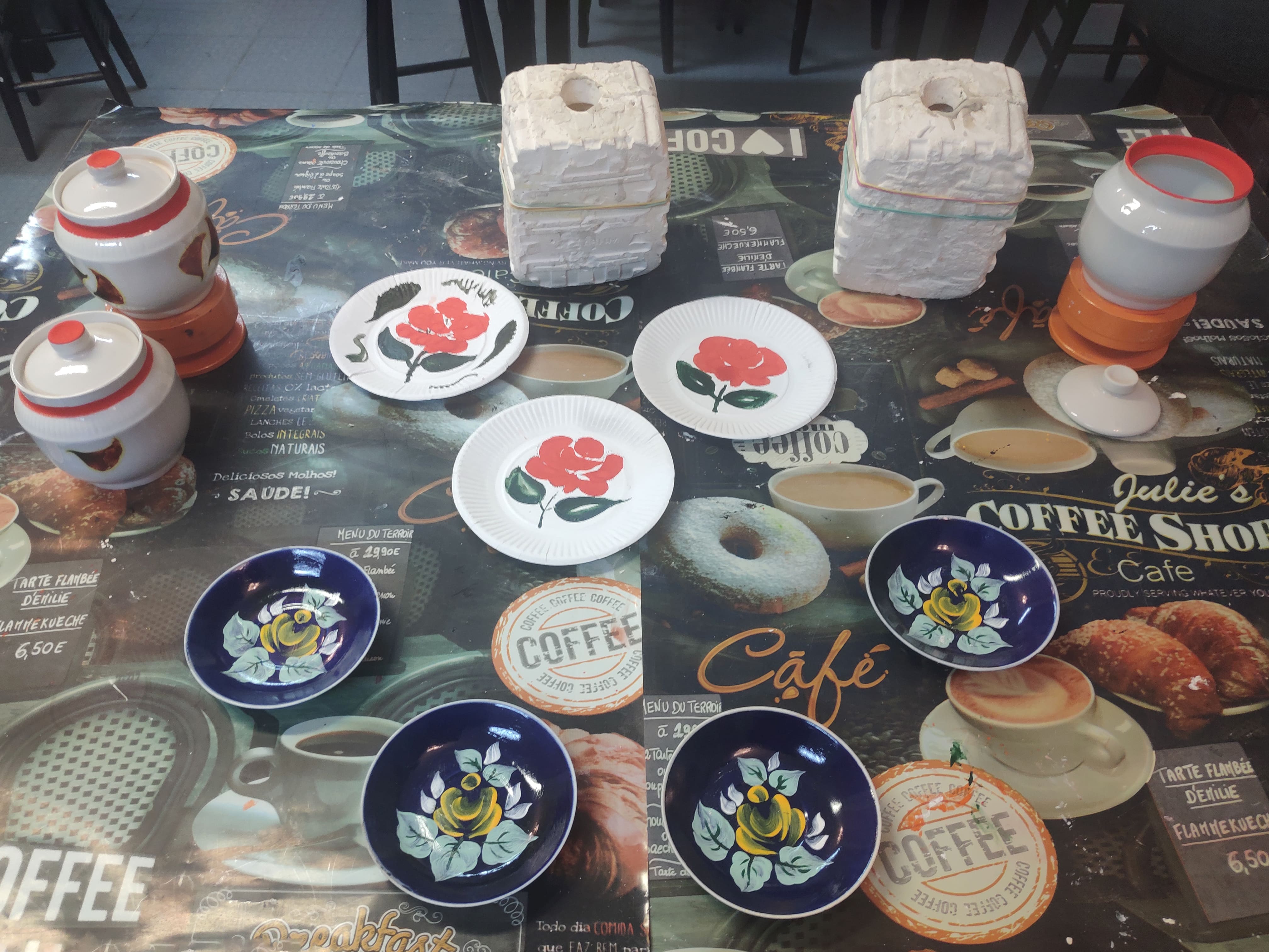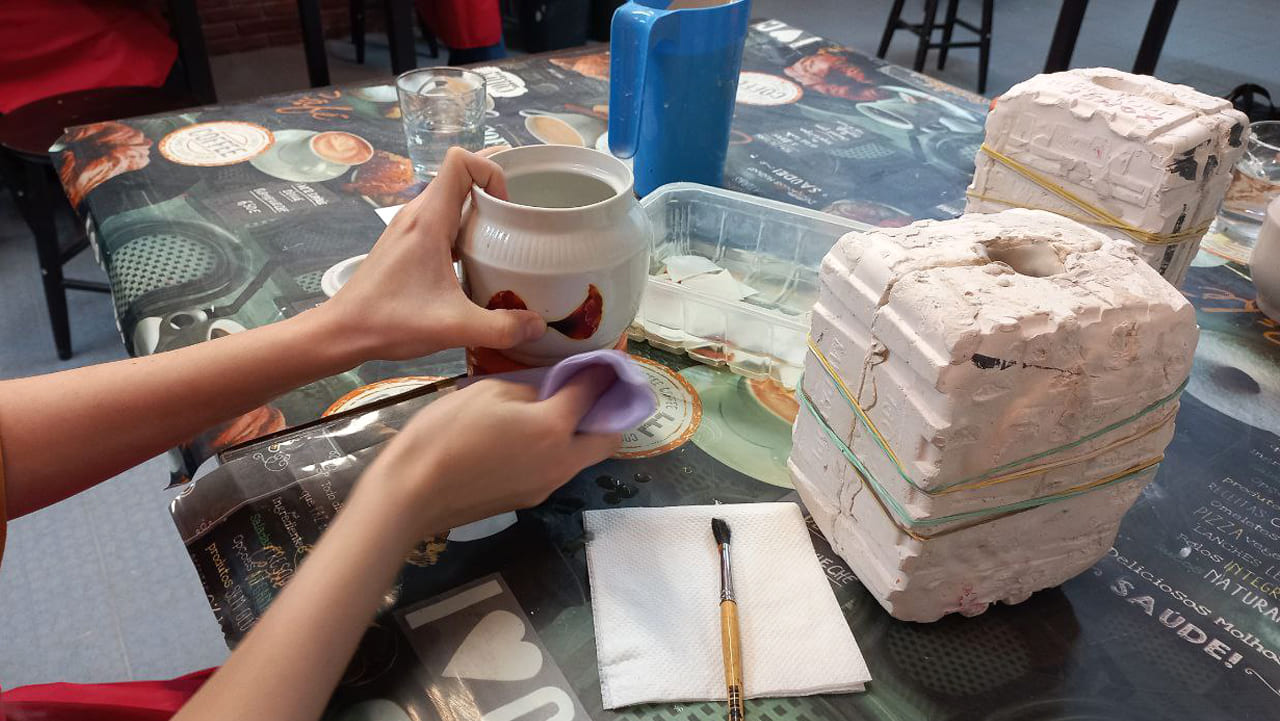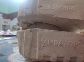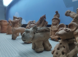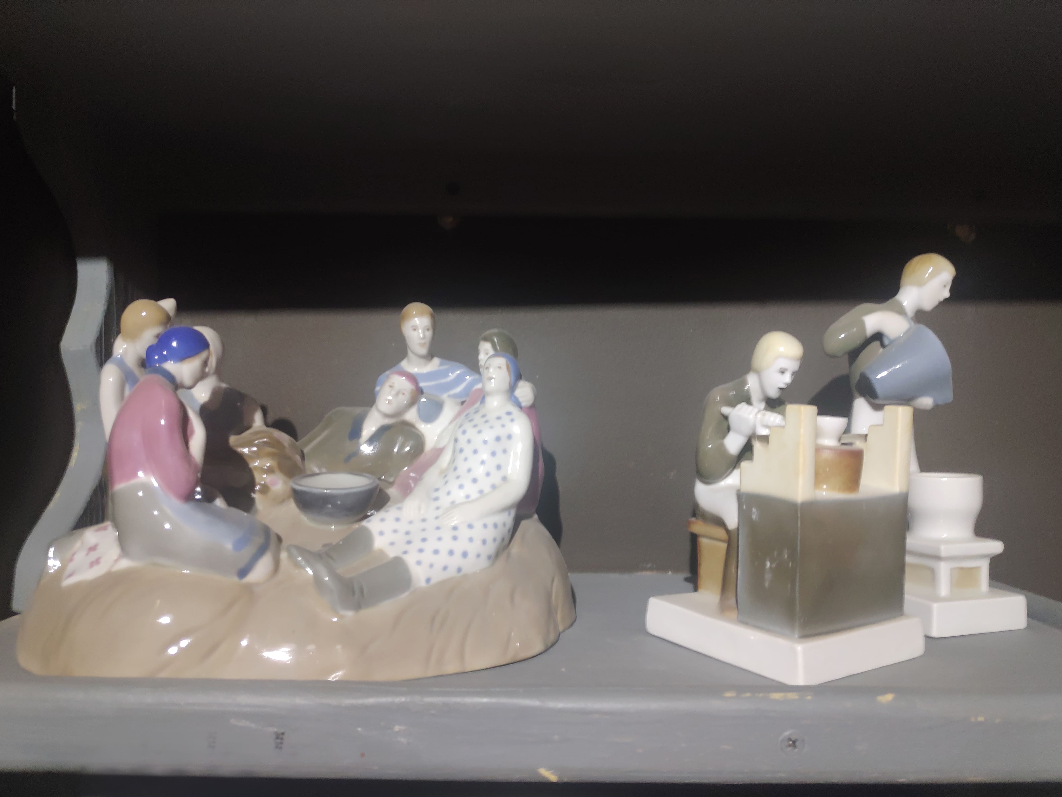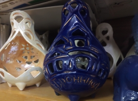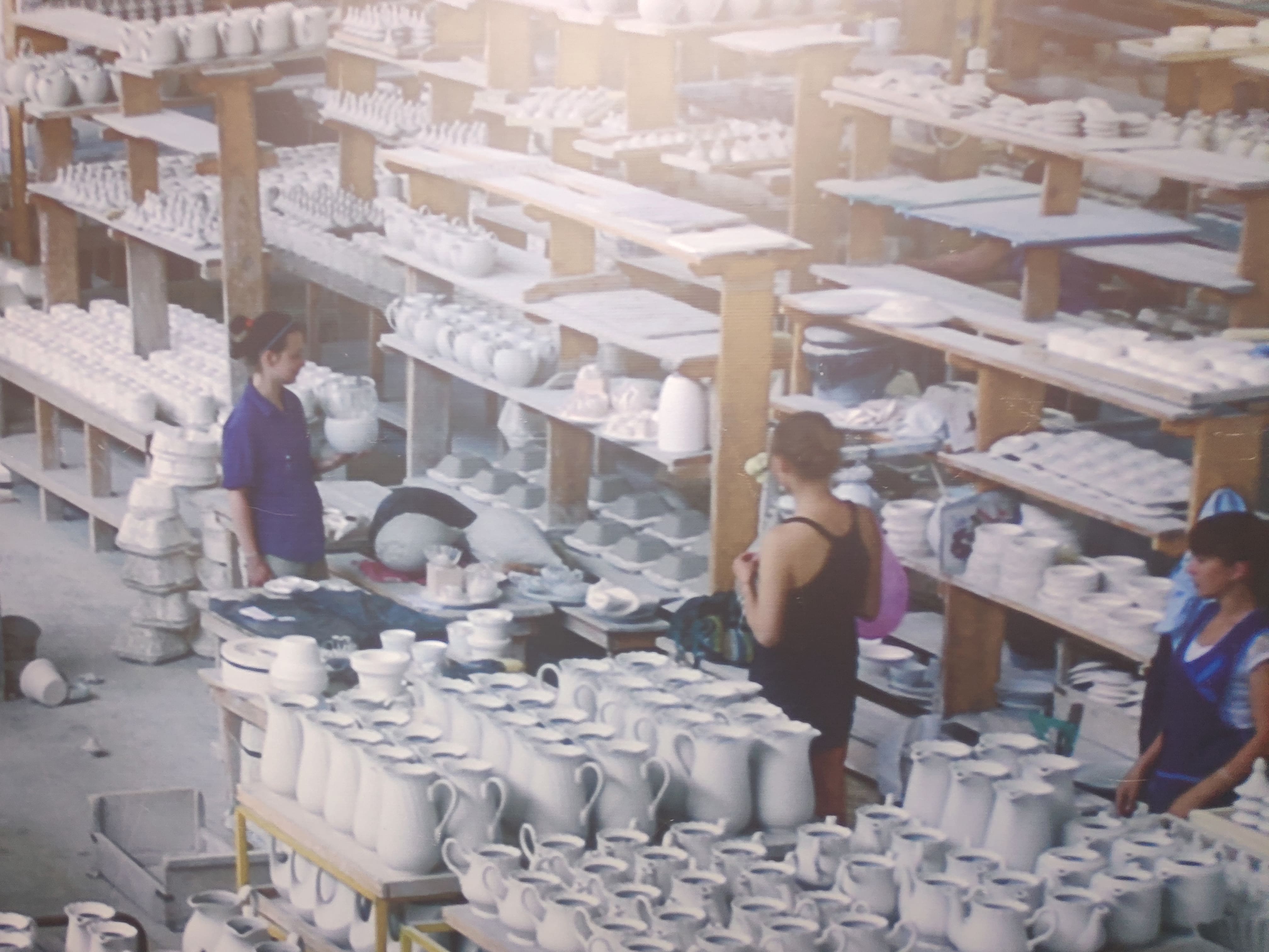 Пролетарский районный Дом культуры, на базе которого создан музей: живописный холл, детские мастерские, формы для обжига, готовые изделия и сувенирная продукция. Дата съемки: осень 2022 года.