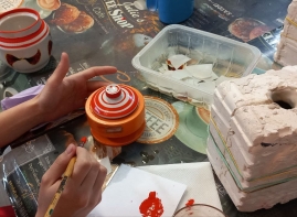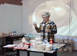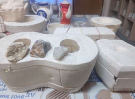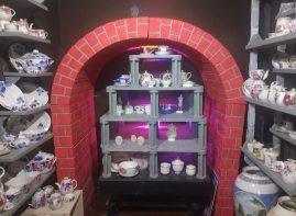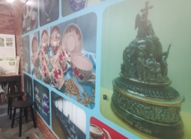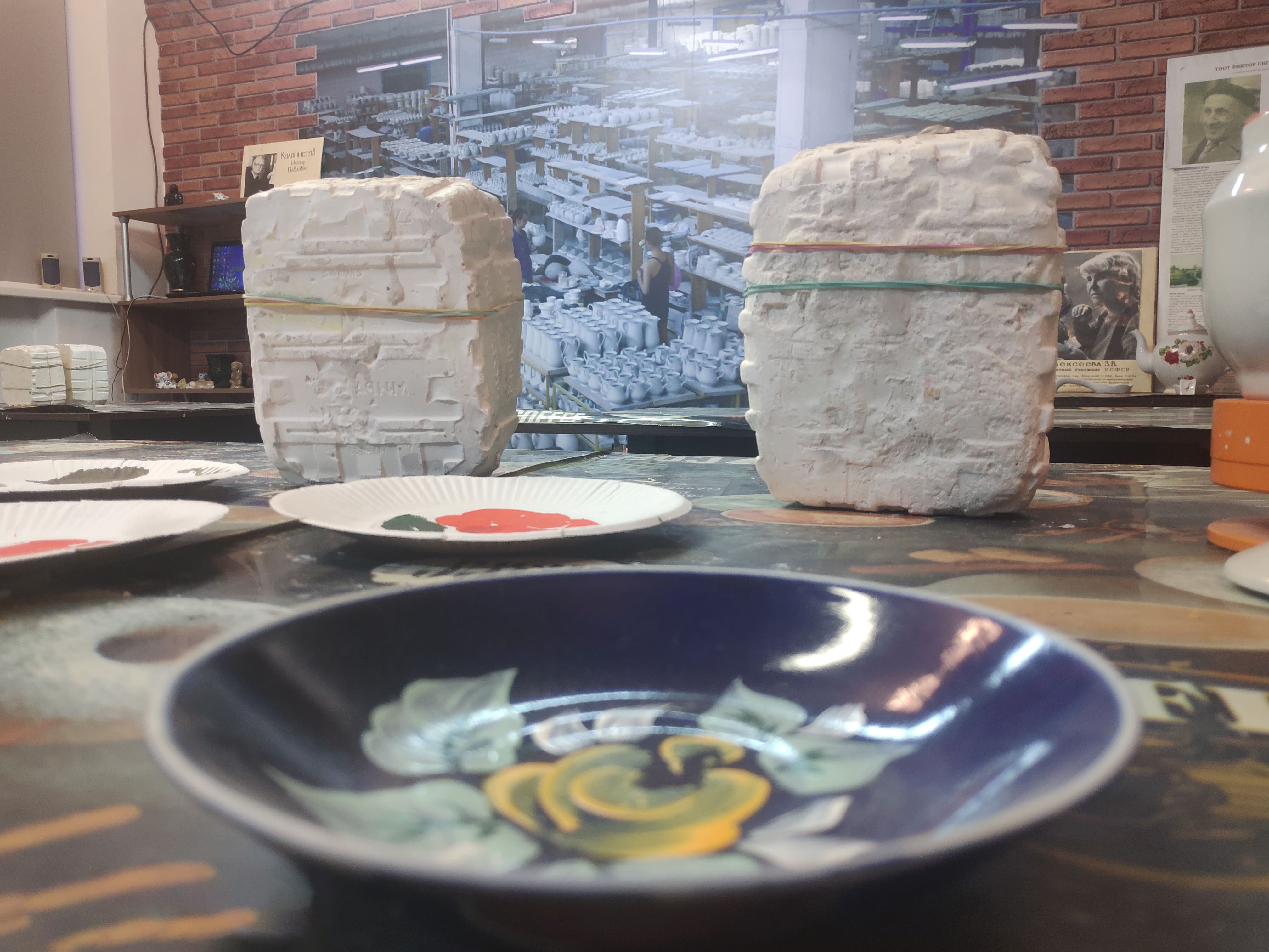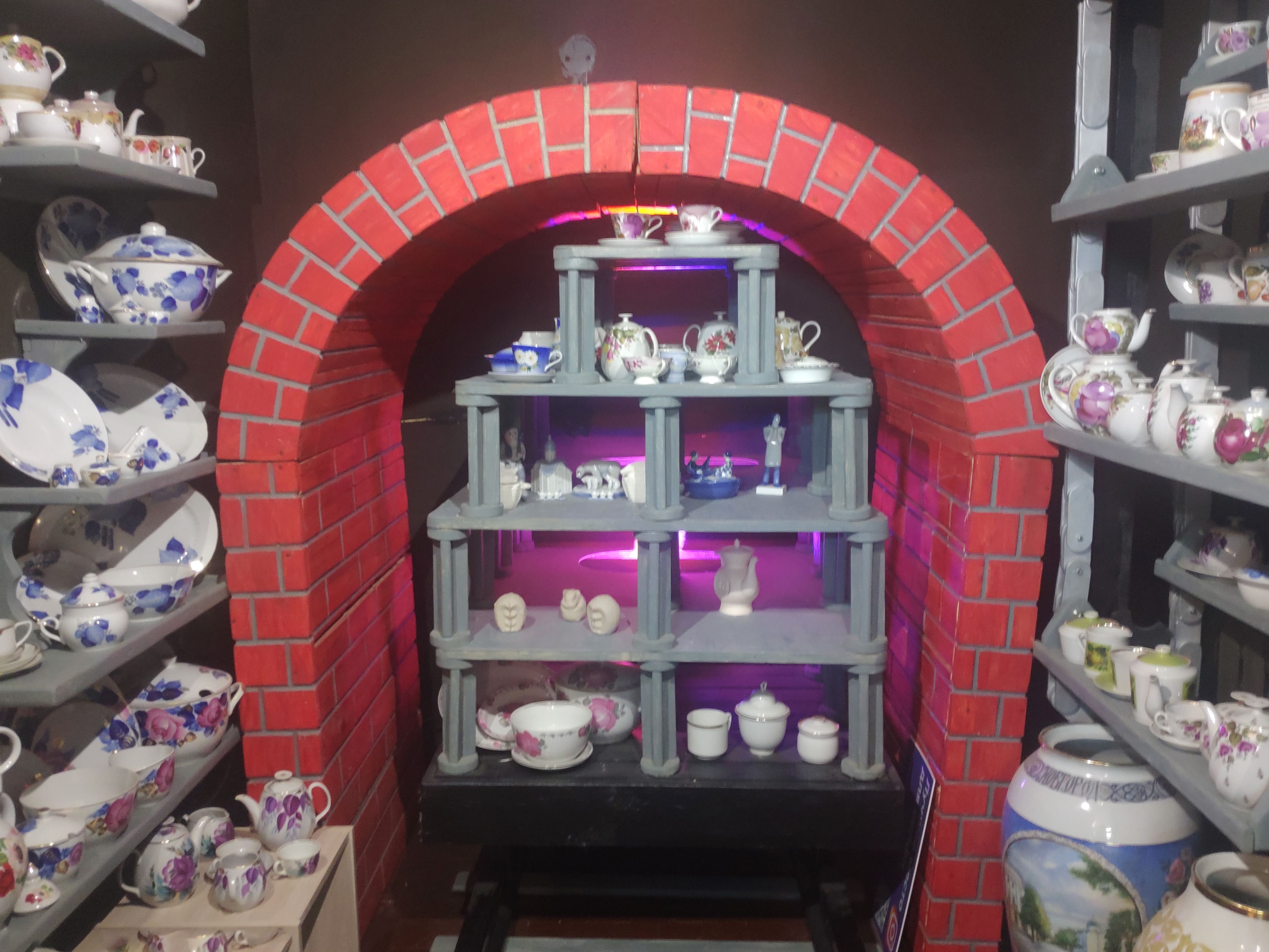 Эко-музей «Фарфоровый перезвон»: интерьеры, информационные материалы, выставочные изделия, мастер-классы по работе с жидким фарфором и росписи. Дата съемки: осень 2022 года.