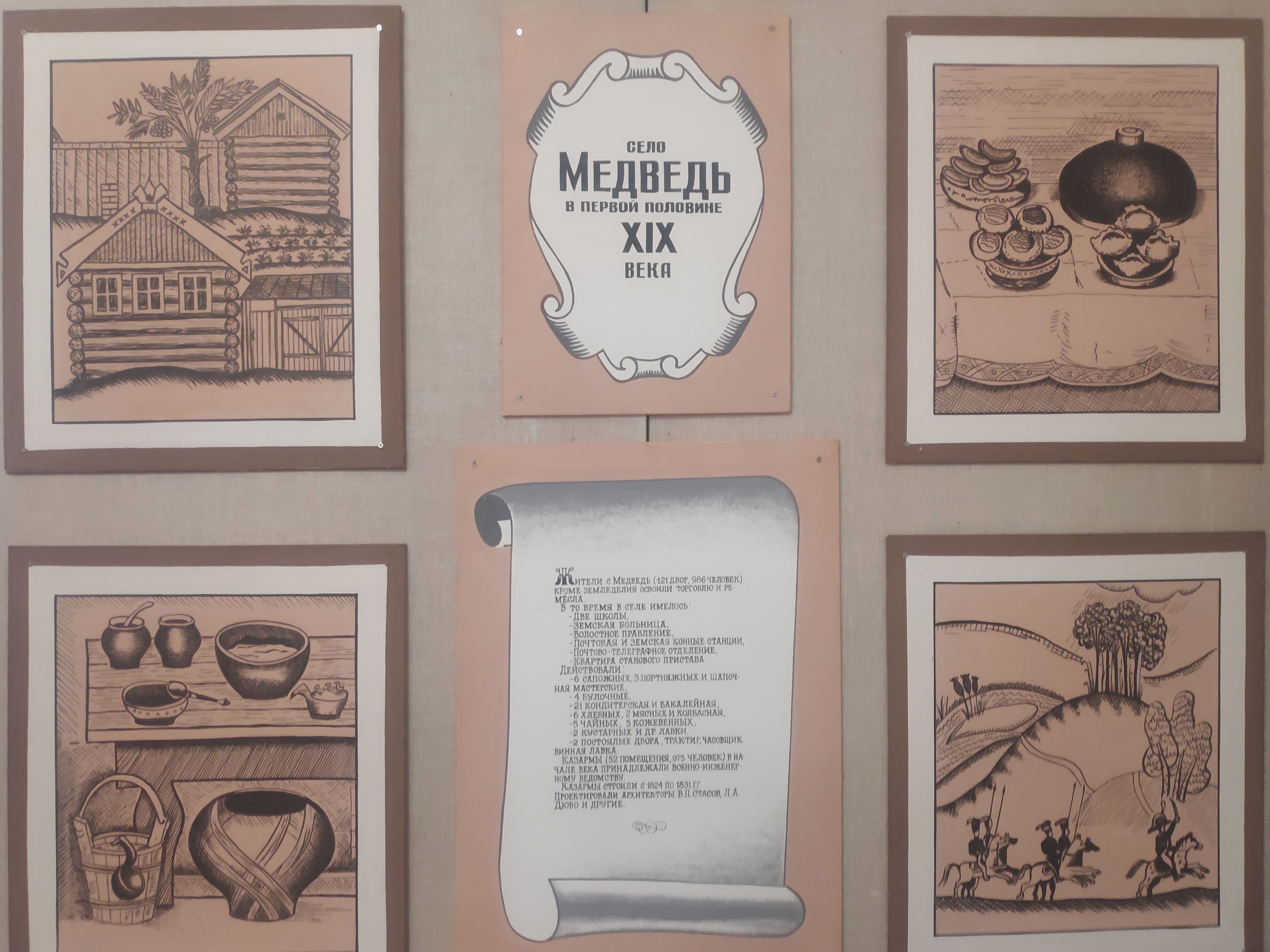 Медведский краеведческий музей: фрагменты экспозиций. Дата съемки: осень 2022 года.