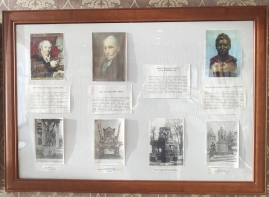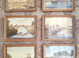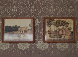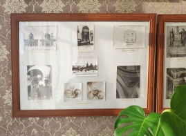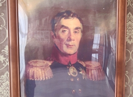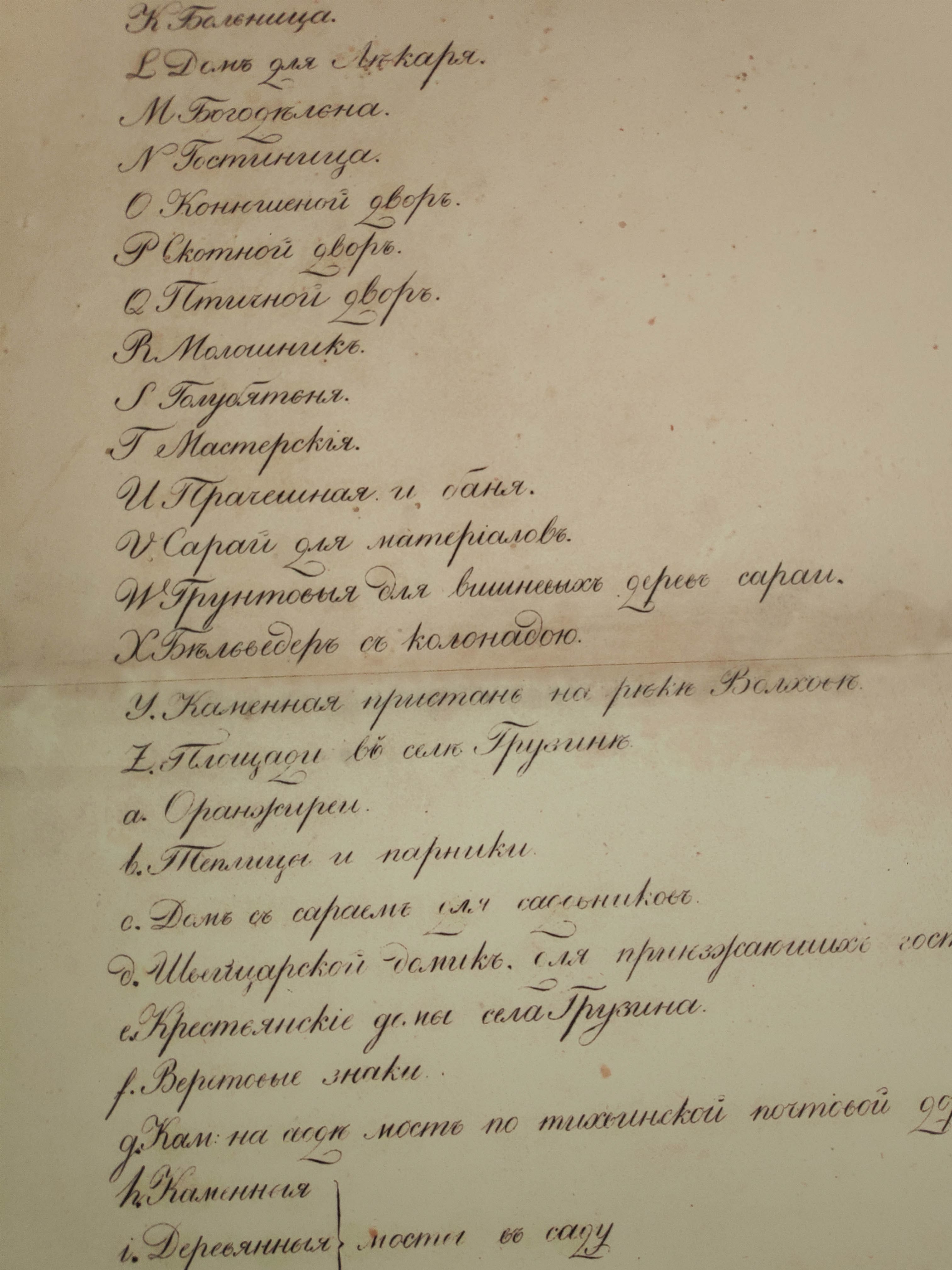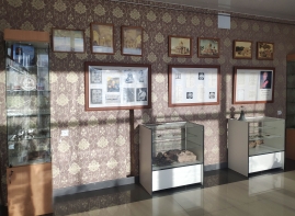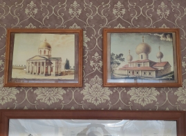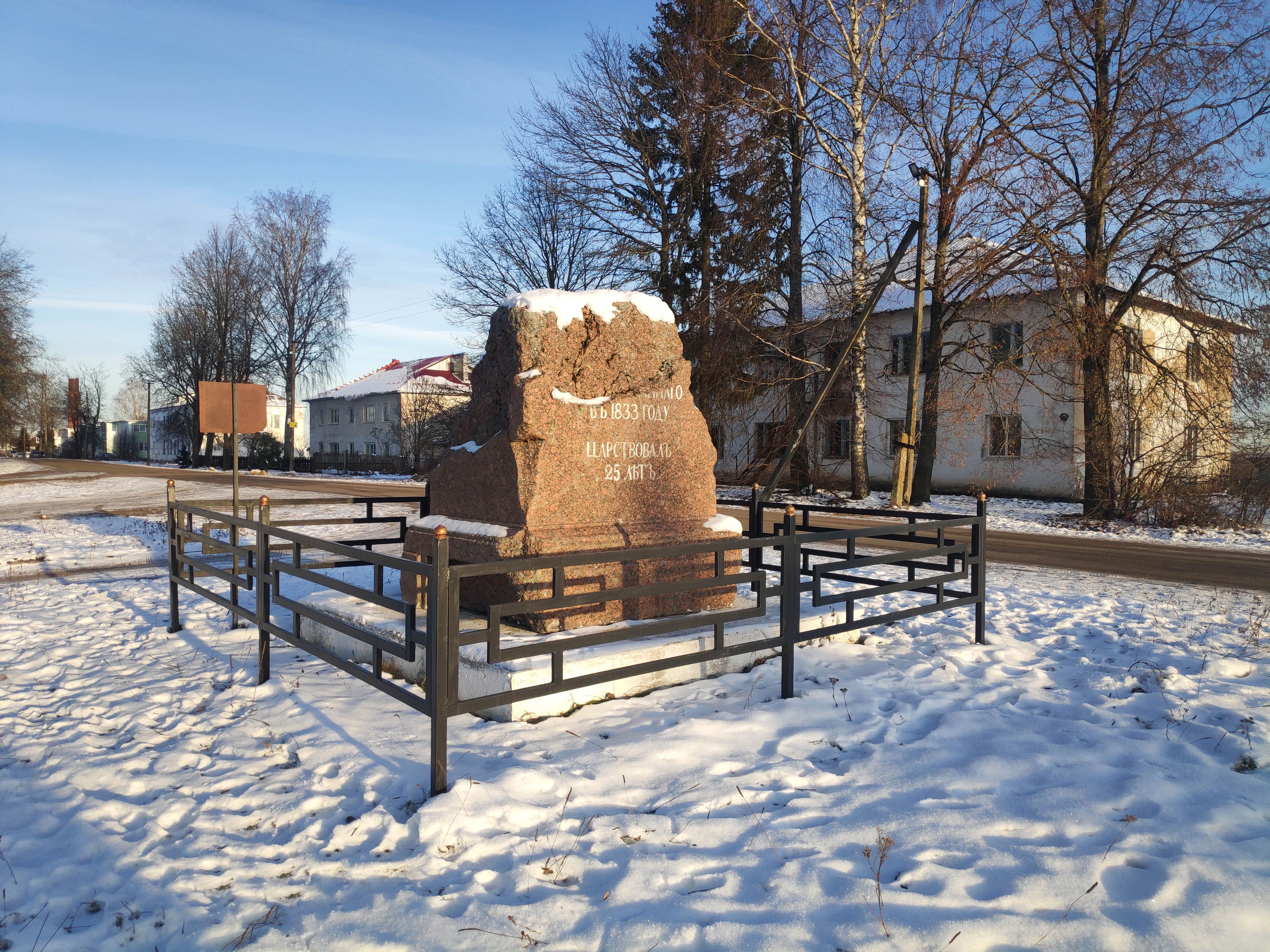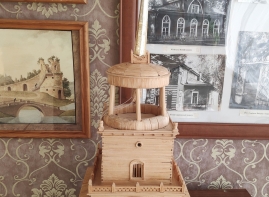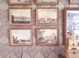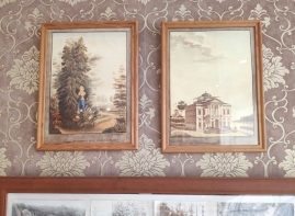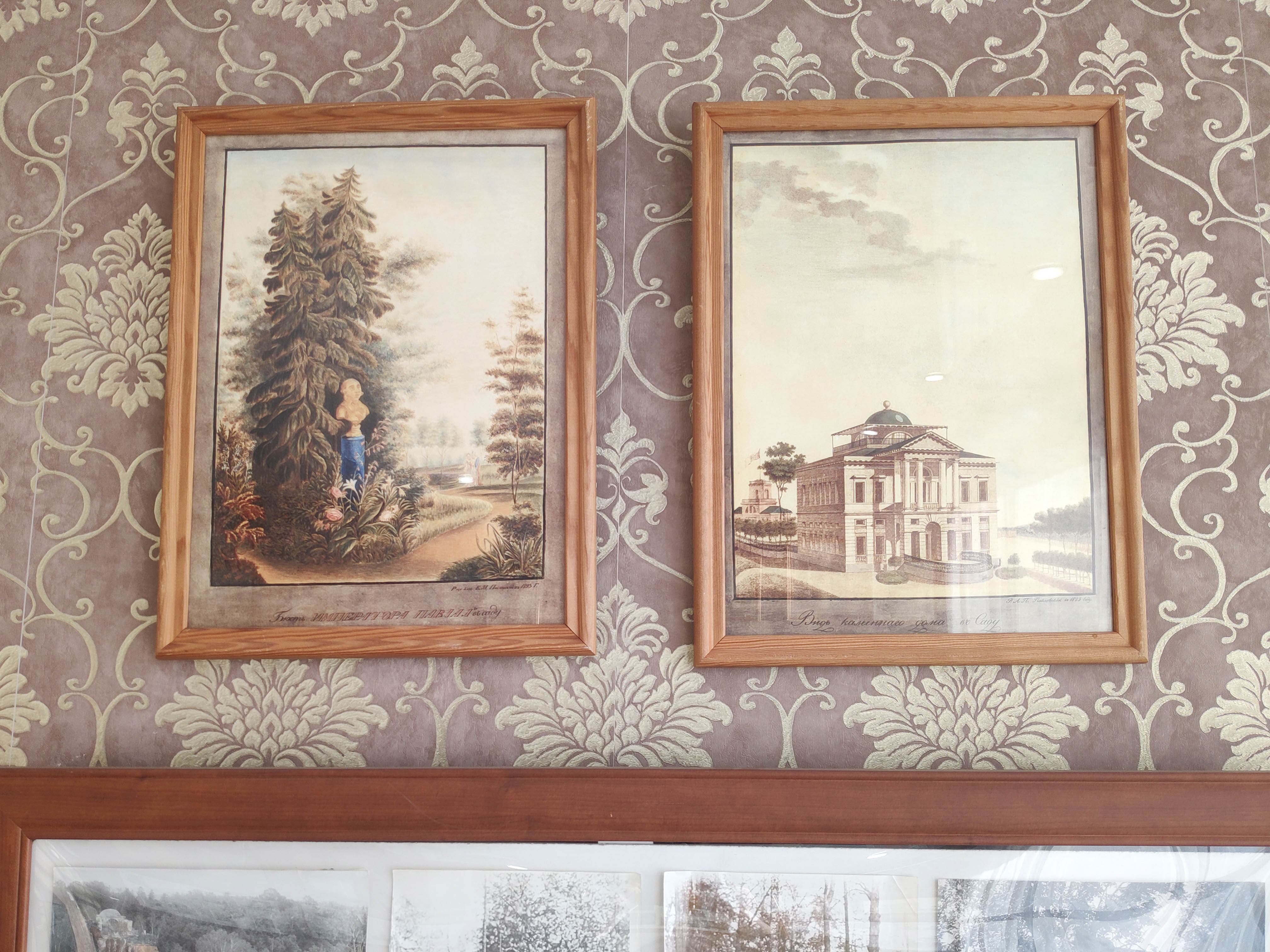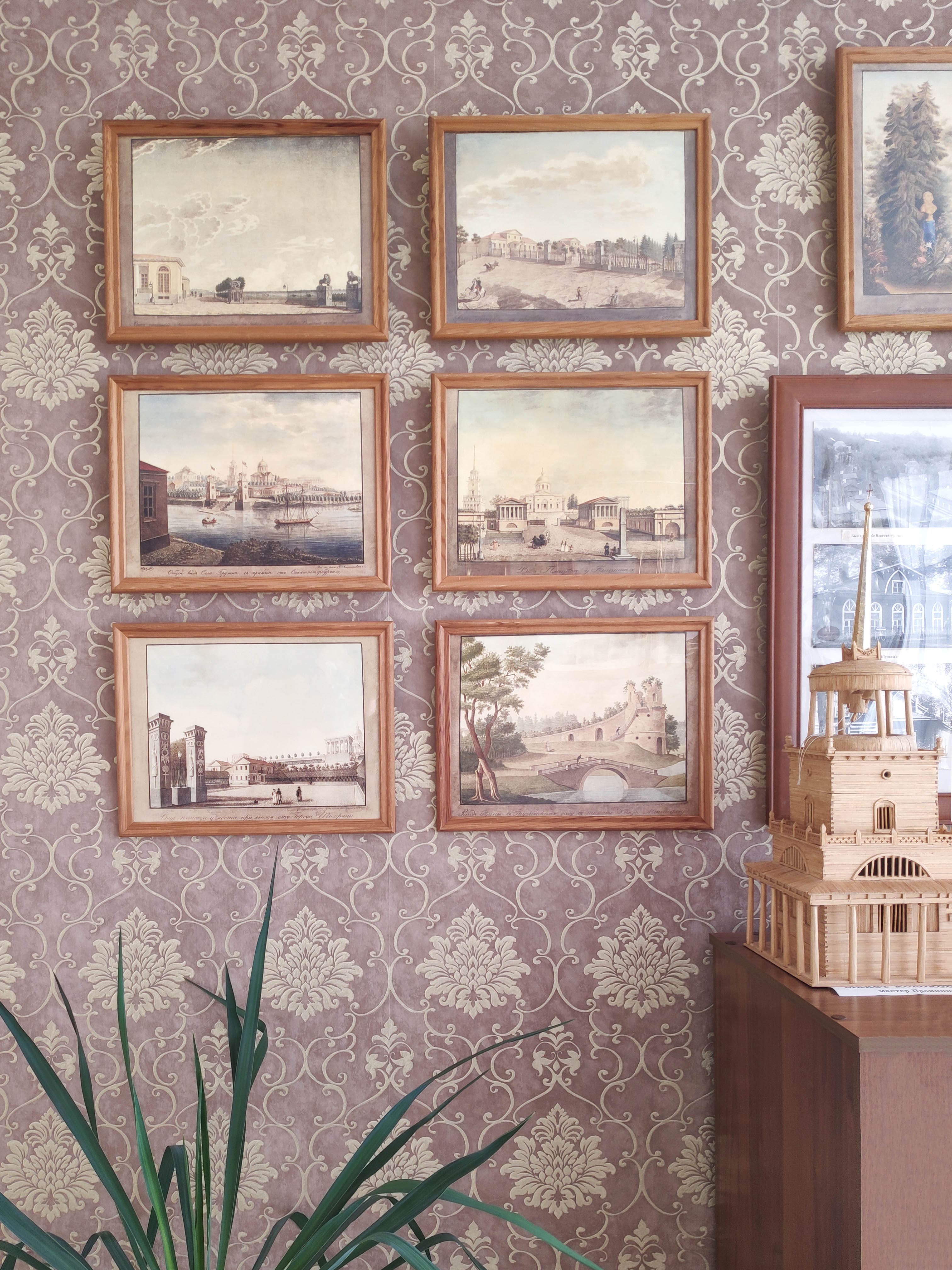 Музейная экспозиция, посвященная графу А.А. Аракчееву в Грузинском центре народного творчества и досуга: памятный знак при входе в центр, вход в музейную комнату, фрагменты экспозиций, исторический генеральный план села Грузина в коридоре центра. Дата съемки: осень 2022 года.