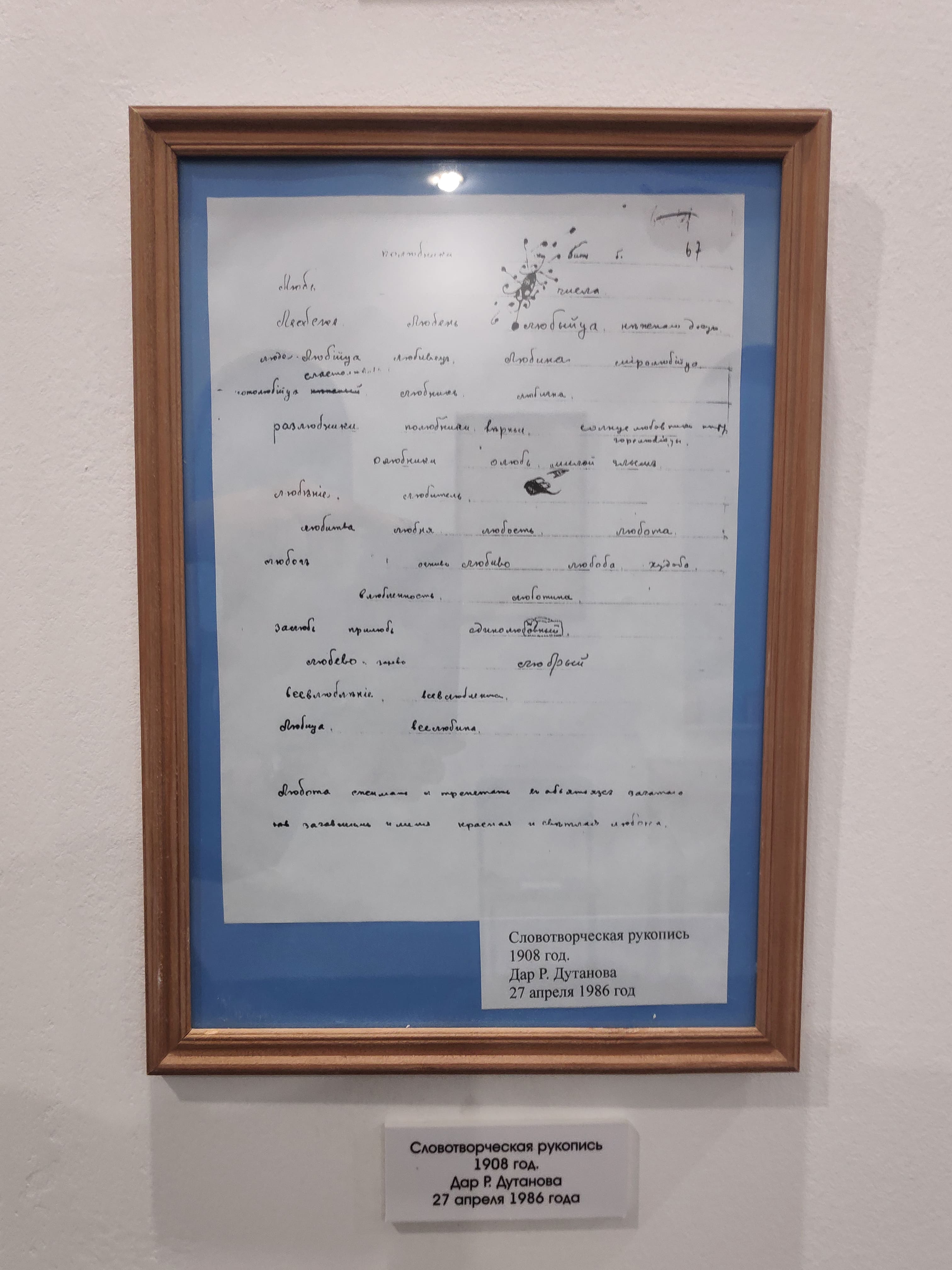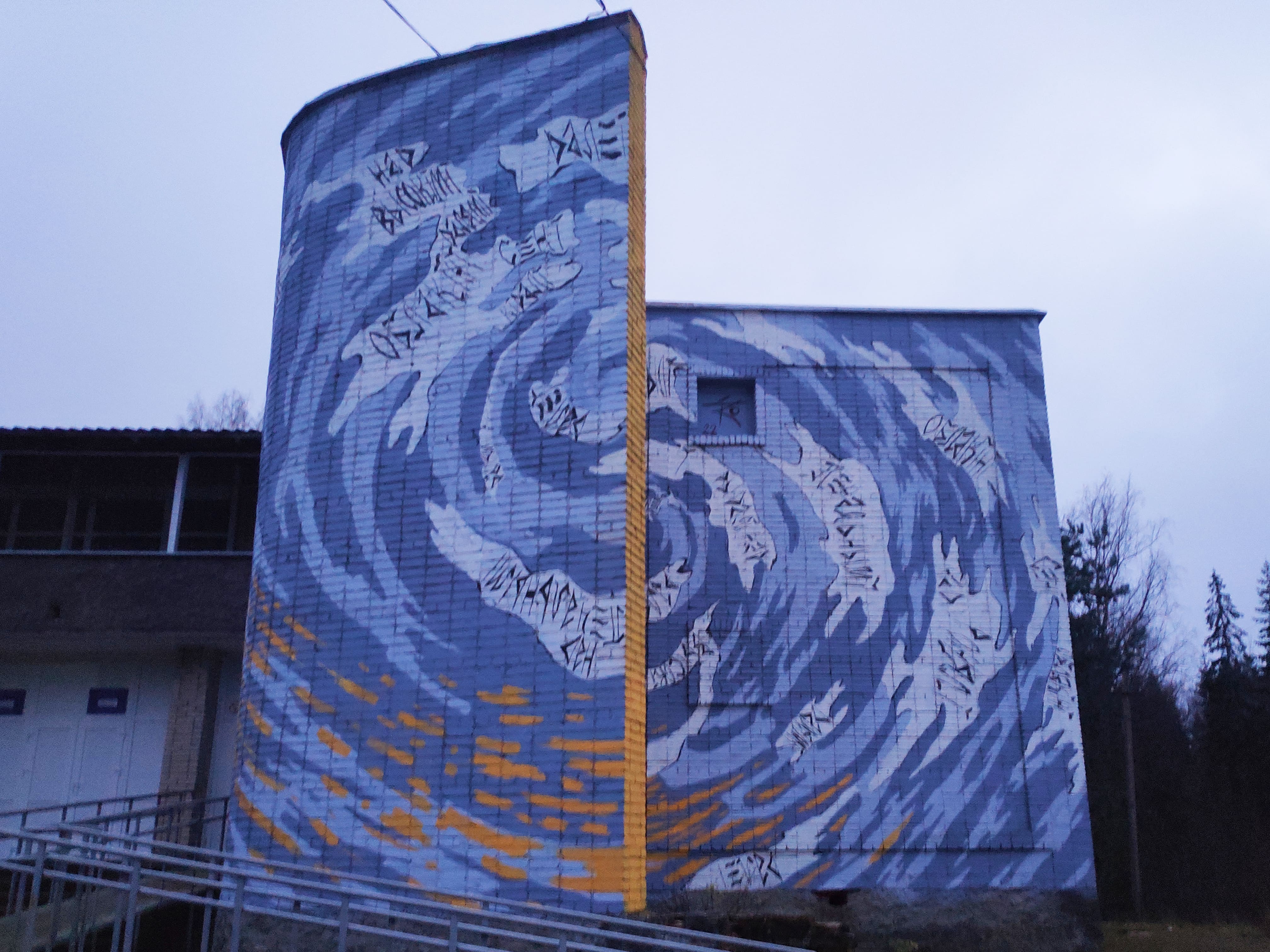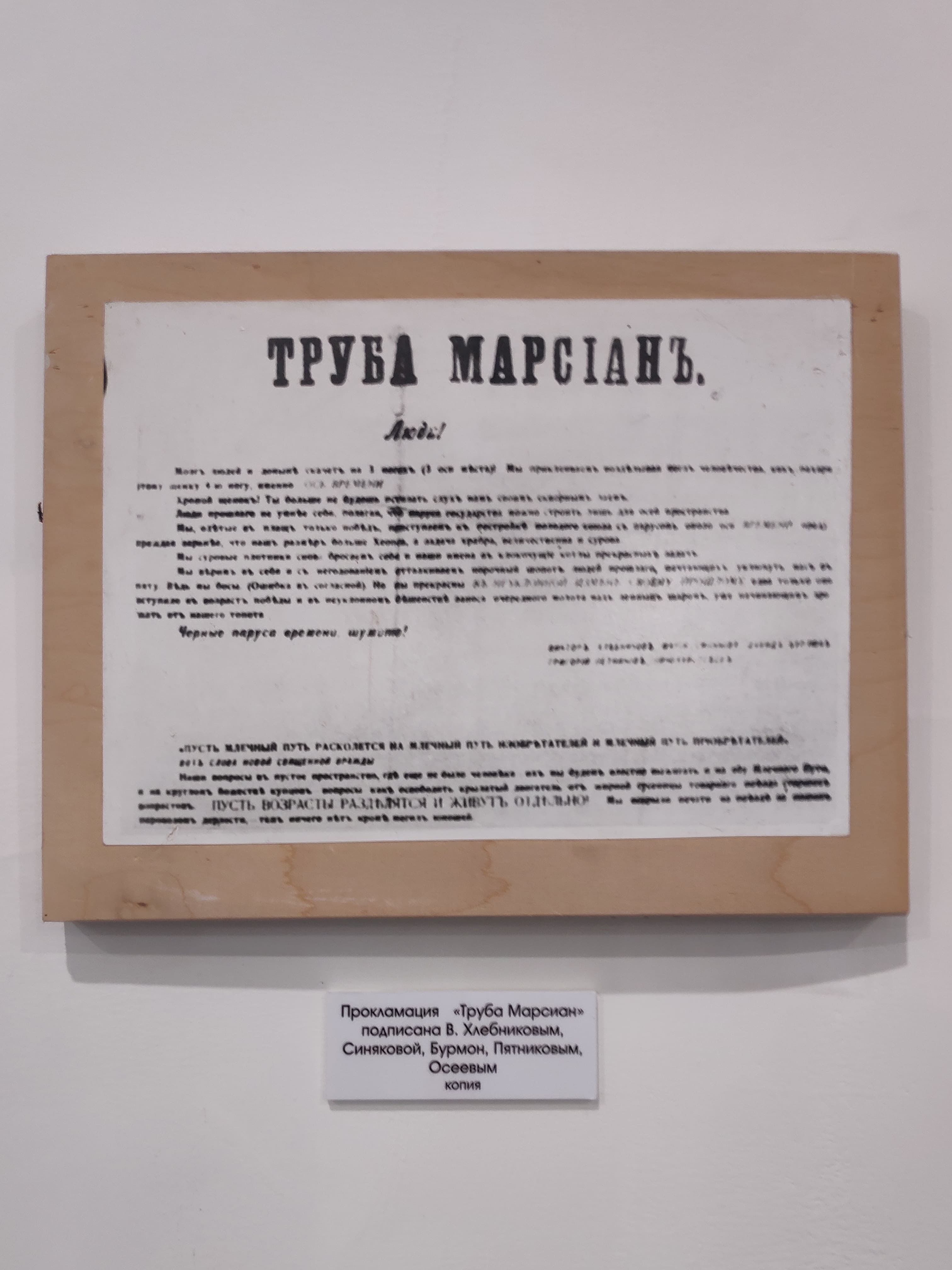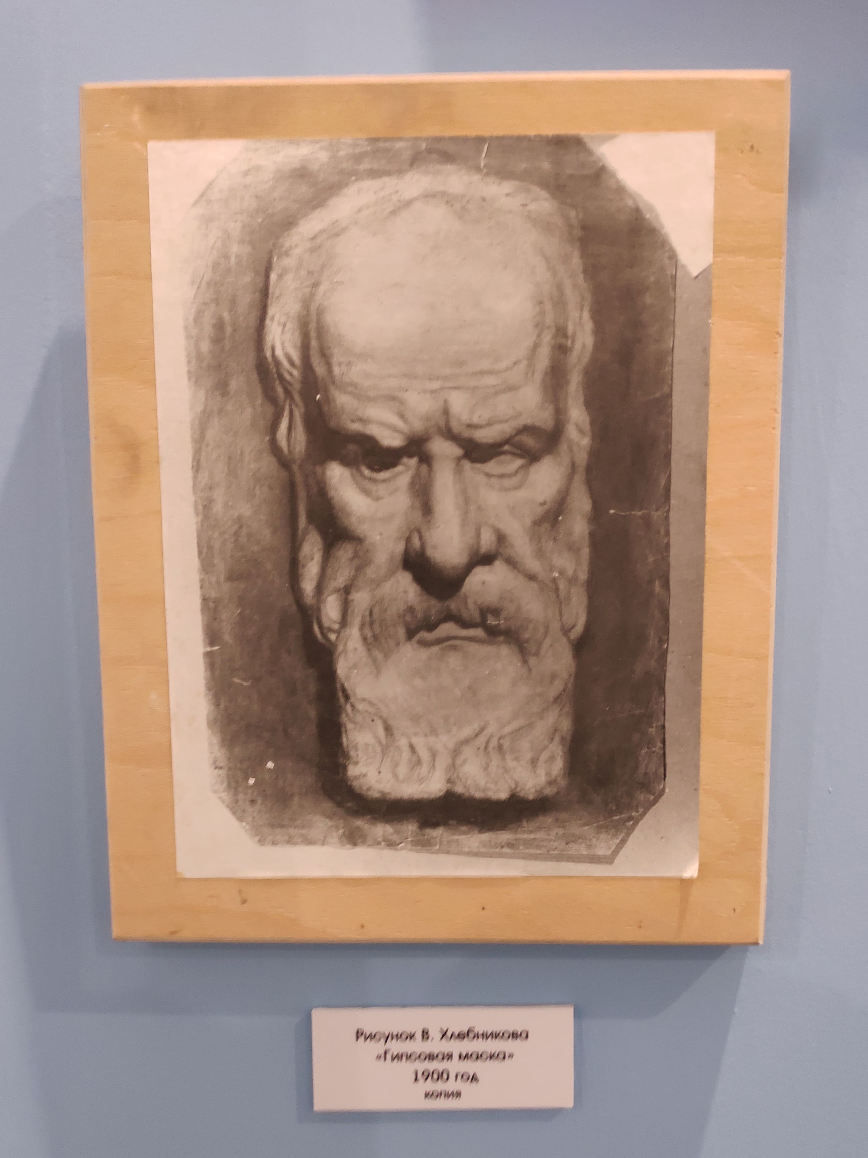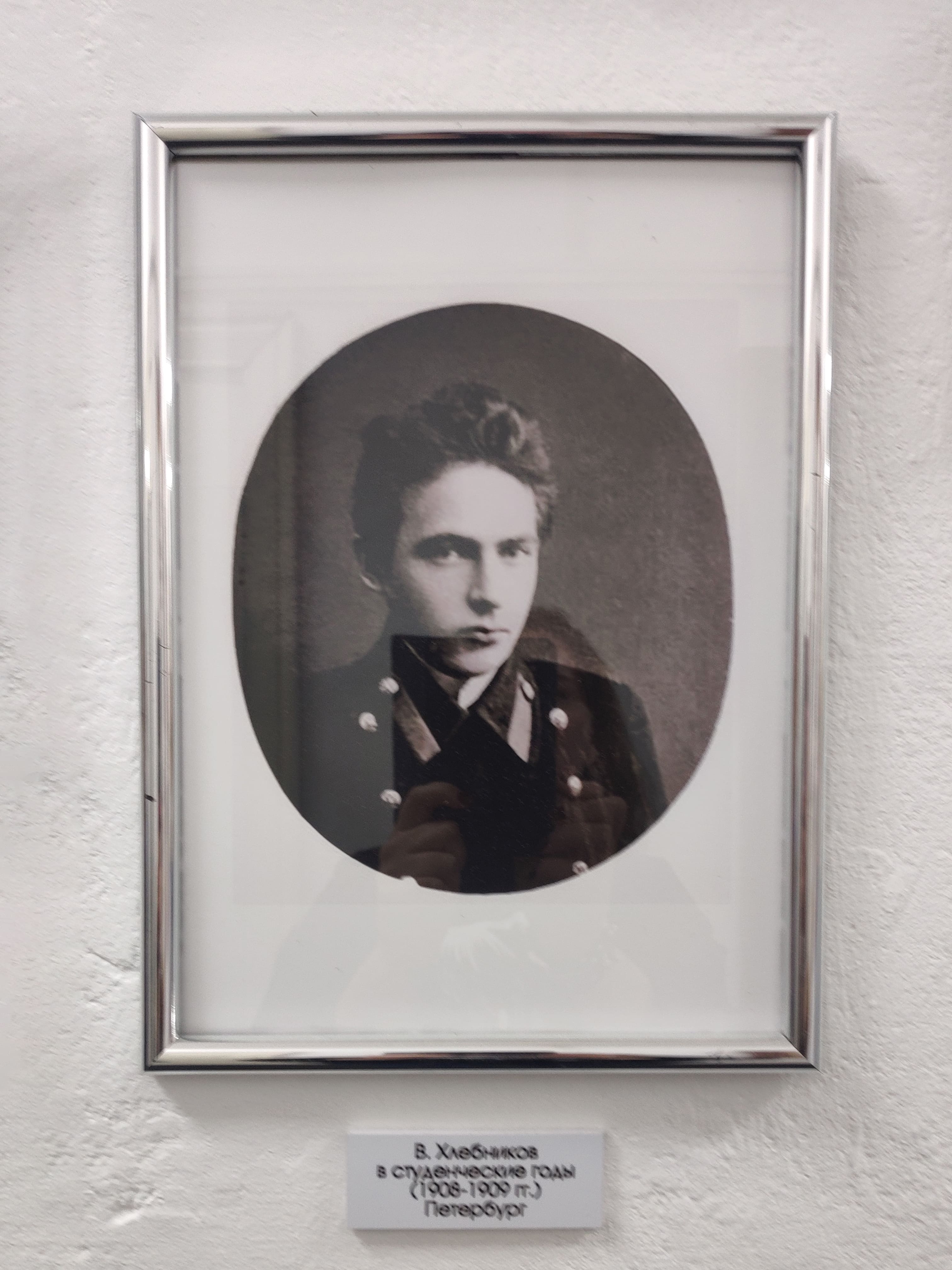 Музей Велимира Хлебникова в Ручьях: мурал на входе, лестница и коридор, выставочные залы. Дата съемки: осень 2022 года.