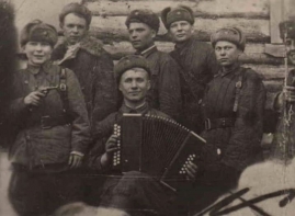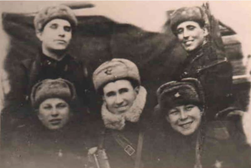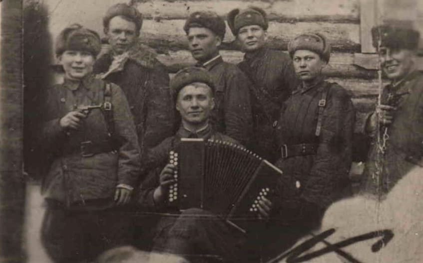 Володя Попов с боевыми товарищами по истребительному отряду. Северо-Западный фронт. 1942 год.