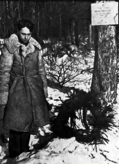1. Павел Шубин у могилы В. Багрицкого. Деревня Новая Кересть, Волховский фронт. 1942 г.